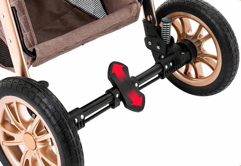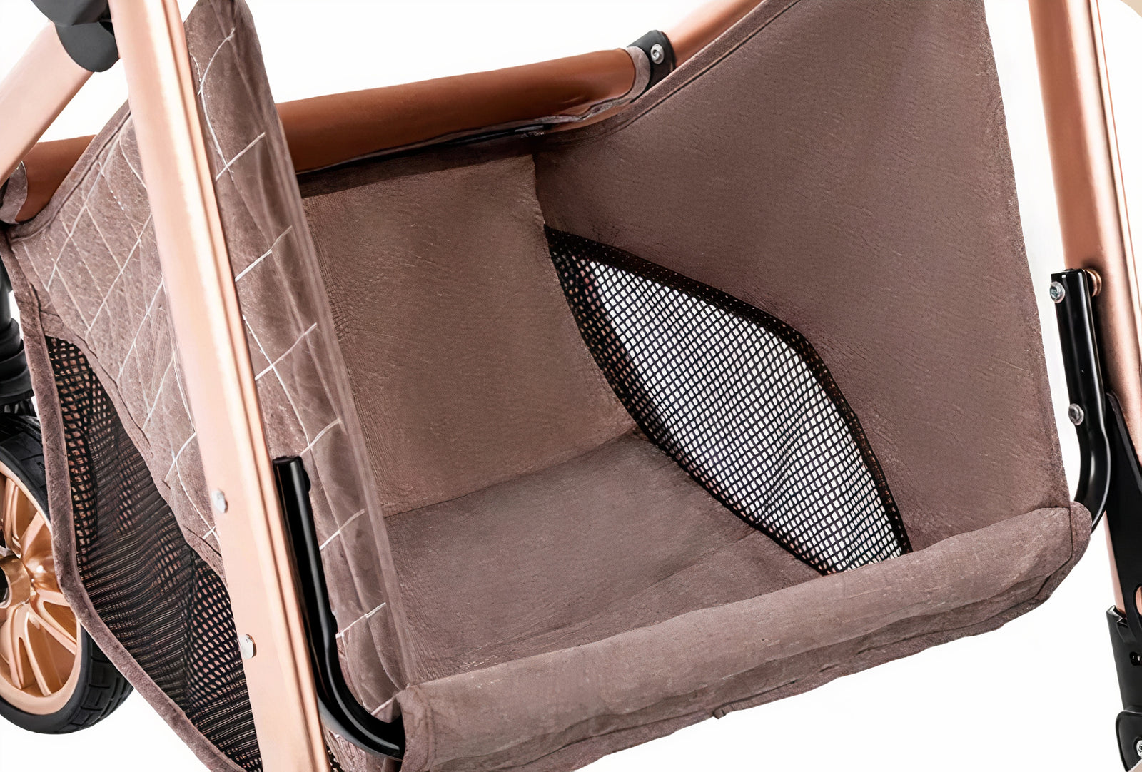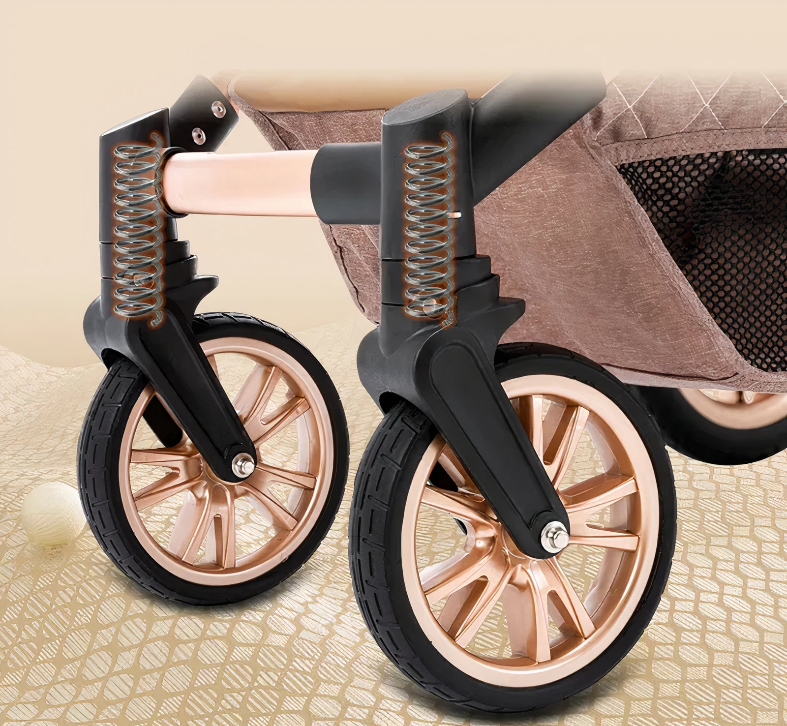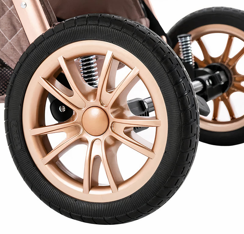 Zažijte nejhladší jízdu pro vašeho malého s odpružením na čtyřech kolech. Náš kočárek snadno klouže po jakémkoli terénu, poskytující nedosažitelné pohodlí. Od nerovných chodníků po dobrodružné cesty, vaše dítě si může užívat jemnou a polstrovanou cestu.