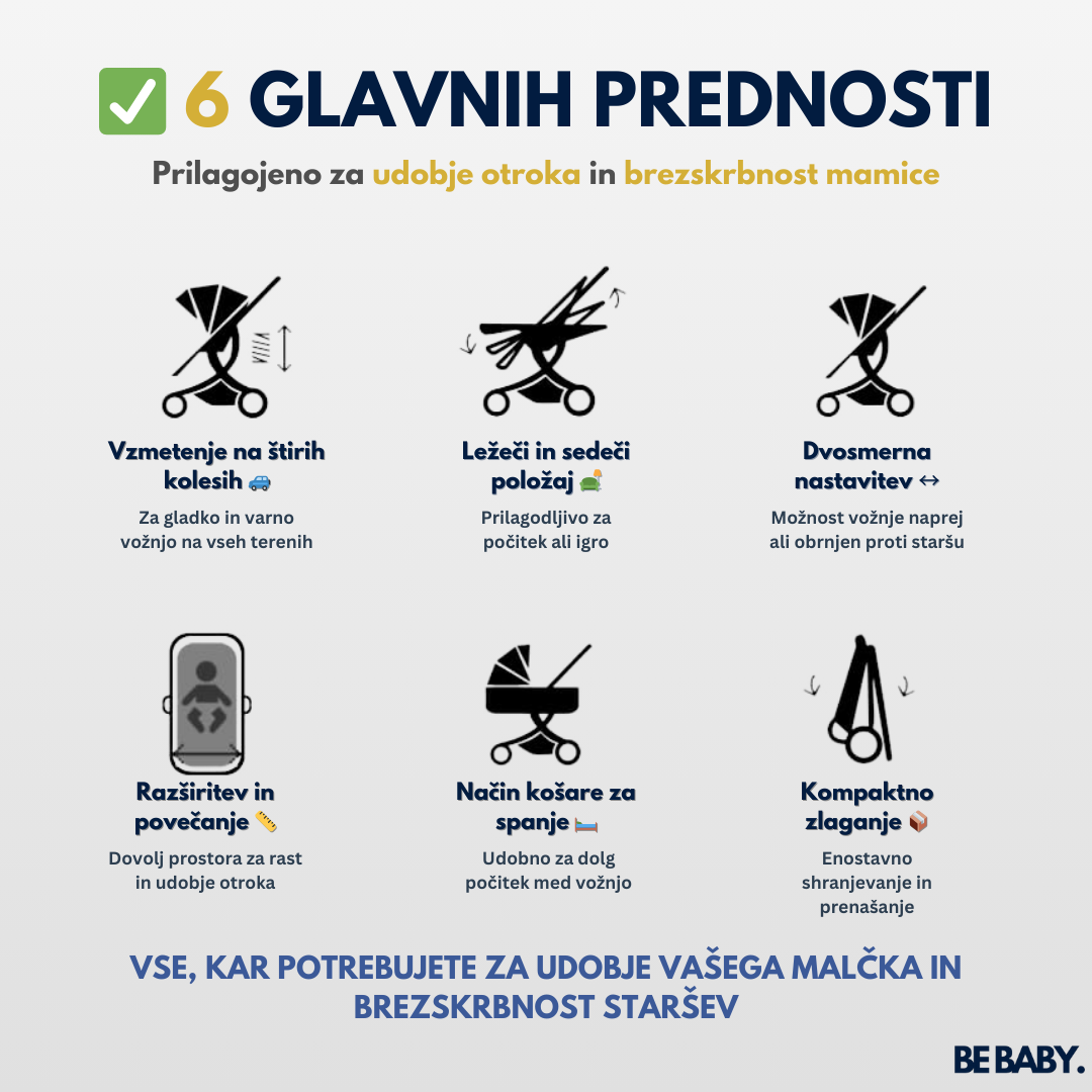 Vyniká svou všestranností a cenou - kombinuje koš, kočárek a autosedačku v jednom elegantním designu. Nabízí také špičkové pohodlí, styl a bezpečnost.