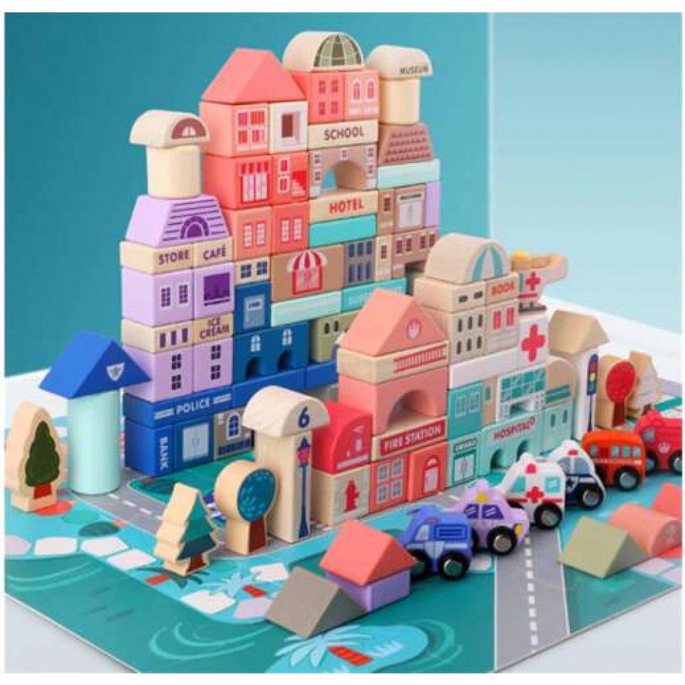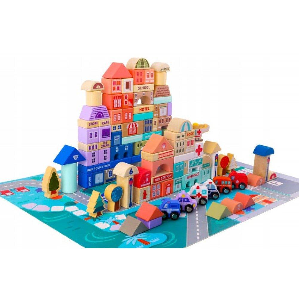 🧠 VÝVOJ – sada městských kostek není jen skvělou zábavou, ale také získáváním znalostí o světě kolem nás, principech fungování města atd. Při hře s takovou hračkou dítě rozvíjí také manuální dovednosti, učí se přesnosti a trpělivosti, cvičí rozpoznávání tvarů, barev atd.