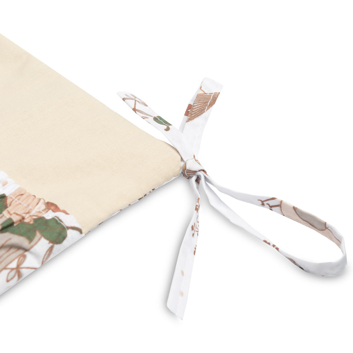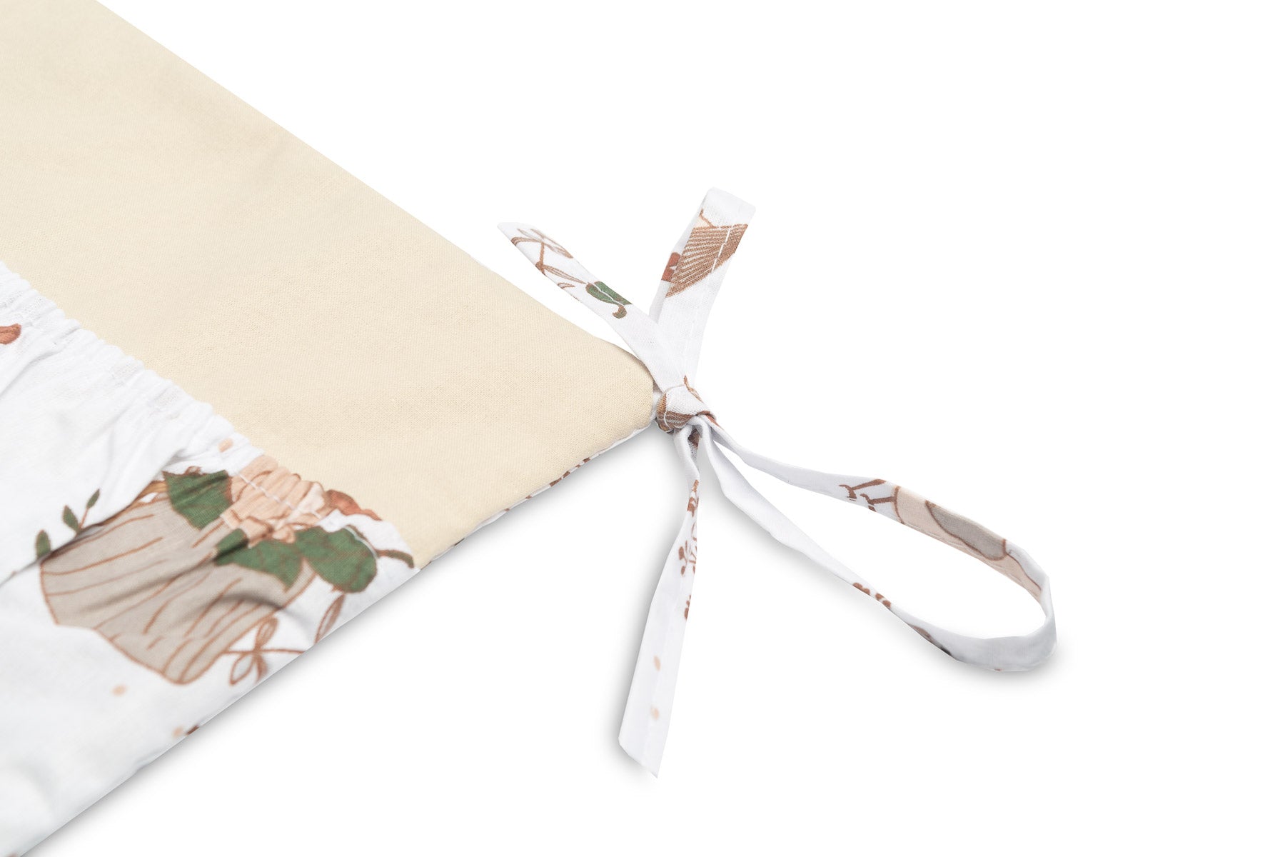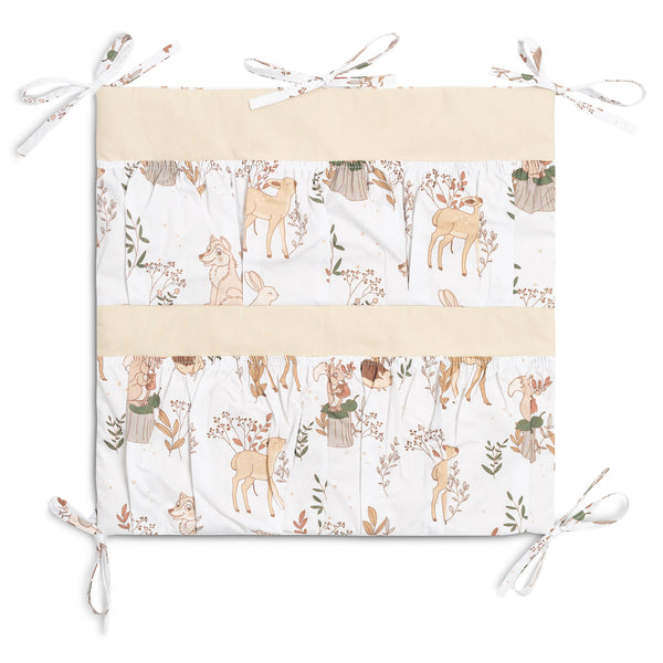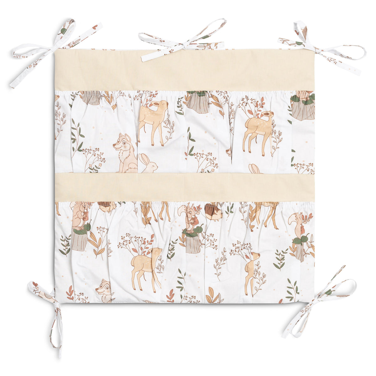 Organizér na postýlku není jen praktický výrobek, ale také ozdoba dětského pokoje. Má celkem 5 kapes, zesílených elastikou, které pojmou všechny potřebné doplňky. Organizér lze snadno připevnit na rám postýlky pomocí všitých pásků. Navíc je zesílen vrstvou silikonového flísu. Vnější část je lemována 100% bavlnou. Organizér lze kombinovat s dalšími výrobky z naší nabídky.