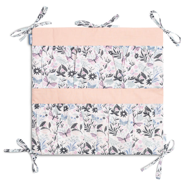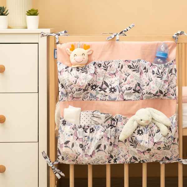 Organizér na postýlku není jen praktický výrobek, ale také ozdoba dětského pokoje. Má celkem 5 kapes, zesílených elastikou, které pojmou všechny potřebné doplňky. Organizér lze snadno připevnit na rám postýlky pomocí všitých pásků. Navíc je zesílen vrstvou silikonového flísu. Vnější část je lemována 100% bavlnou. Organizér lze kombinovat s dalšími výrobky z naší nabídky.
