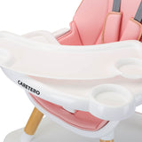 Tuva je vyroben z vysoce kvalitních materiálů, což ho činí odolným a bezpečným. Má pětibodové pásy a dodatečnou ochranu na podnose, která zabraňuje sklouznutí dítěte. S ohledem na pohodlí dítěte a rodiče má židlička dvojitý, nastavitelný podnos se dvěma místy na šálek. Sedadlo je měkké a snadno se čistí.