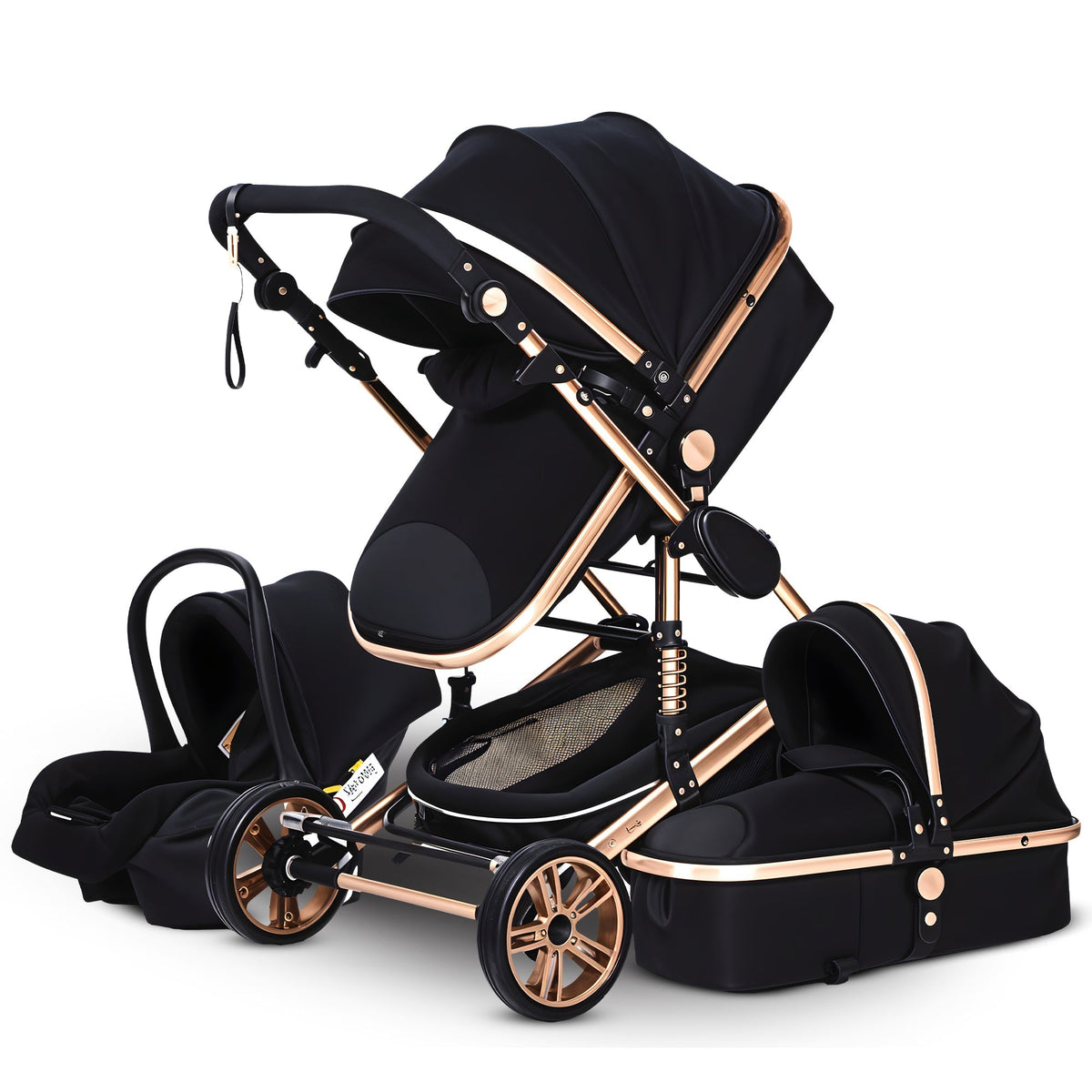 Více funkcí 3-v-1 dětský kočárek je všestranný dopravní prostředek, který lze použít jako kočárek a jako sedačku. Kočárek lze obvykle nastavit do různých poloh, aby vyhovoval potřebám dítěte, včetně sedící a ležící polohy. Lze jej snadno přeměnit na sedačku pro bezproblémový přechod mezi jízdou autem a procházkami.