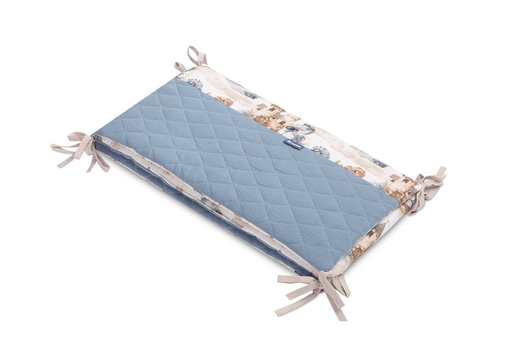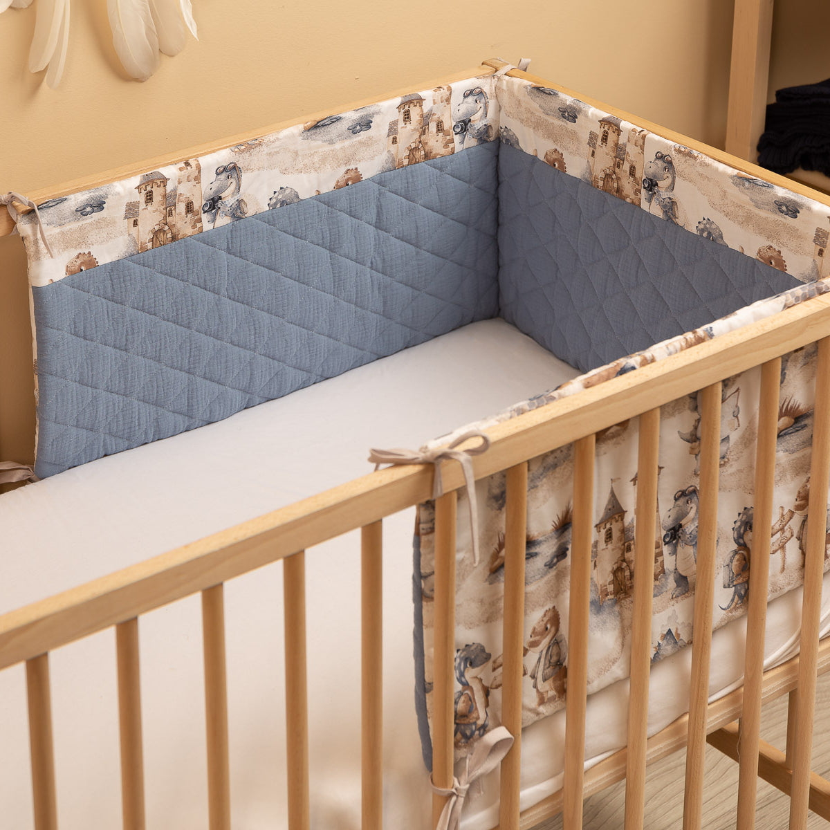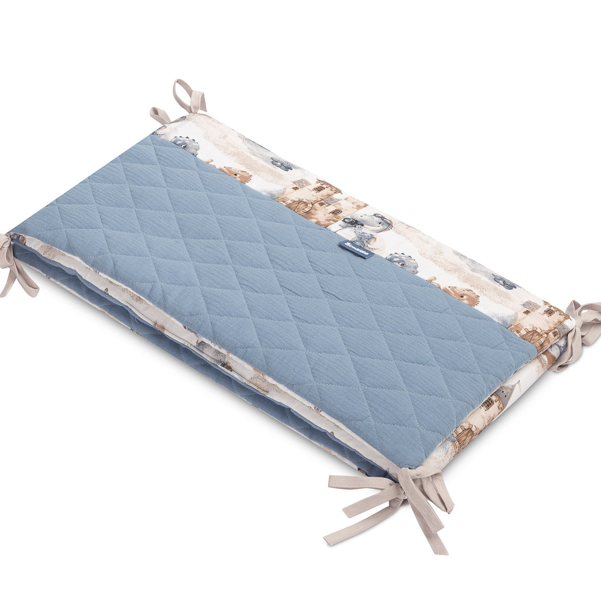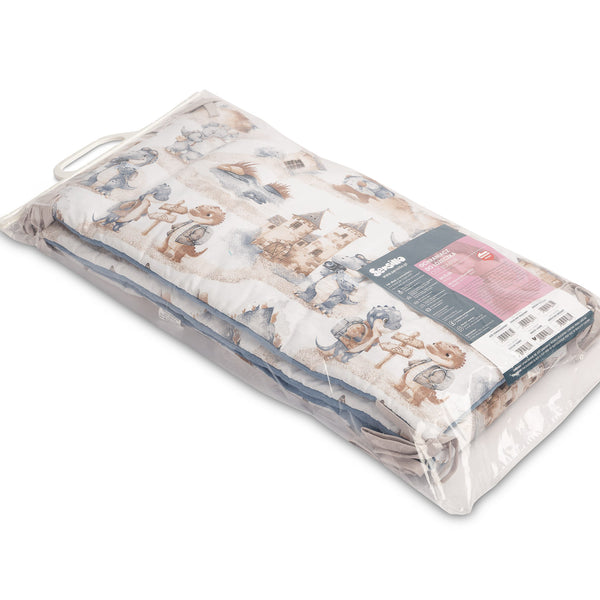 Ochranný lem na postýlku se hodí na každou standardní dětskou postýlku. Lem je vyroben z měkké tištěné bavlny a příjemného mušelínu na dotek. Výplň z polyesteru ochrání dítě před zraněním během pohybu v postýlce. Lem zůstane na svém místě díky páskům, kterými se připevní k příčkám postýlky. Je určen pro postýlku o rozměrech 120x60 cm. Lem bude skvělým doplňkem k dětskému vybavení.