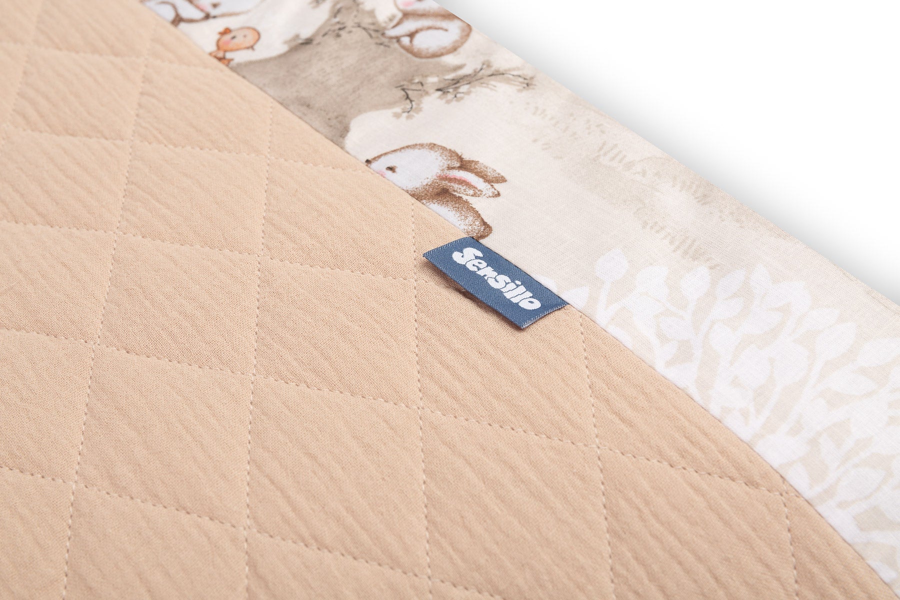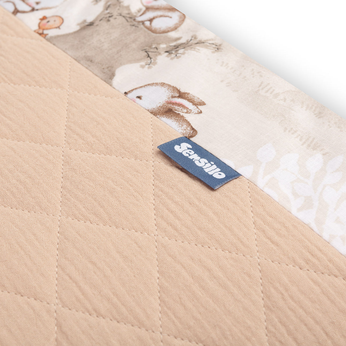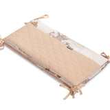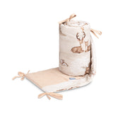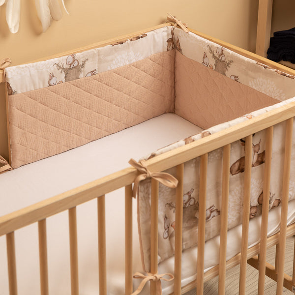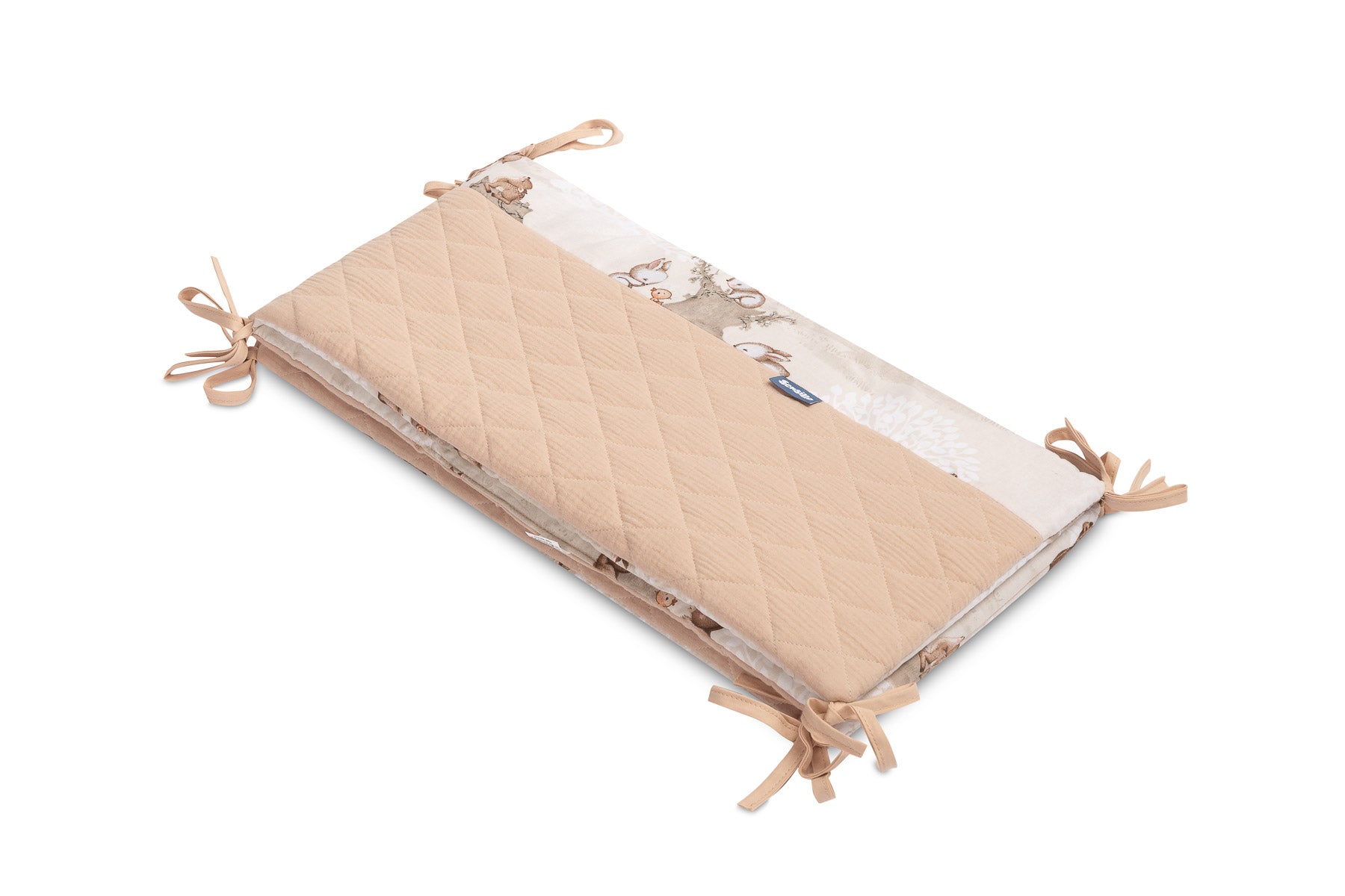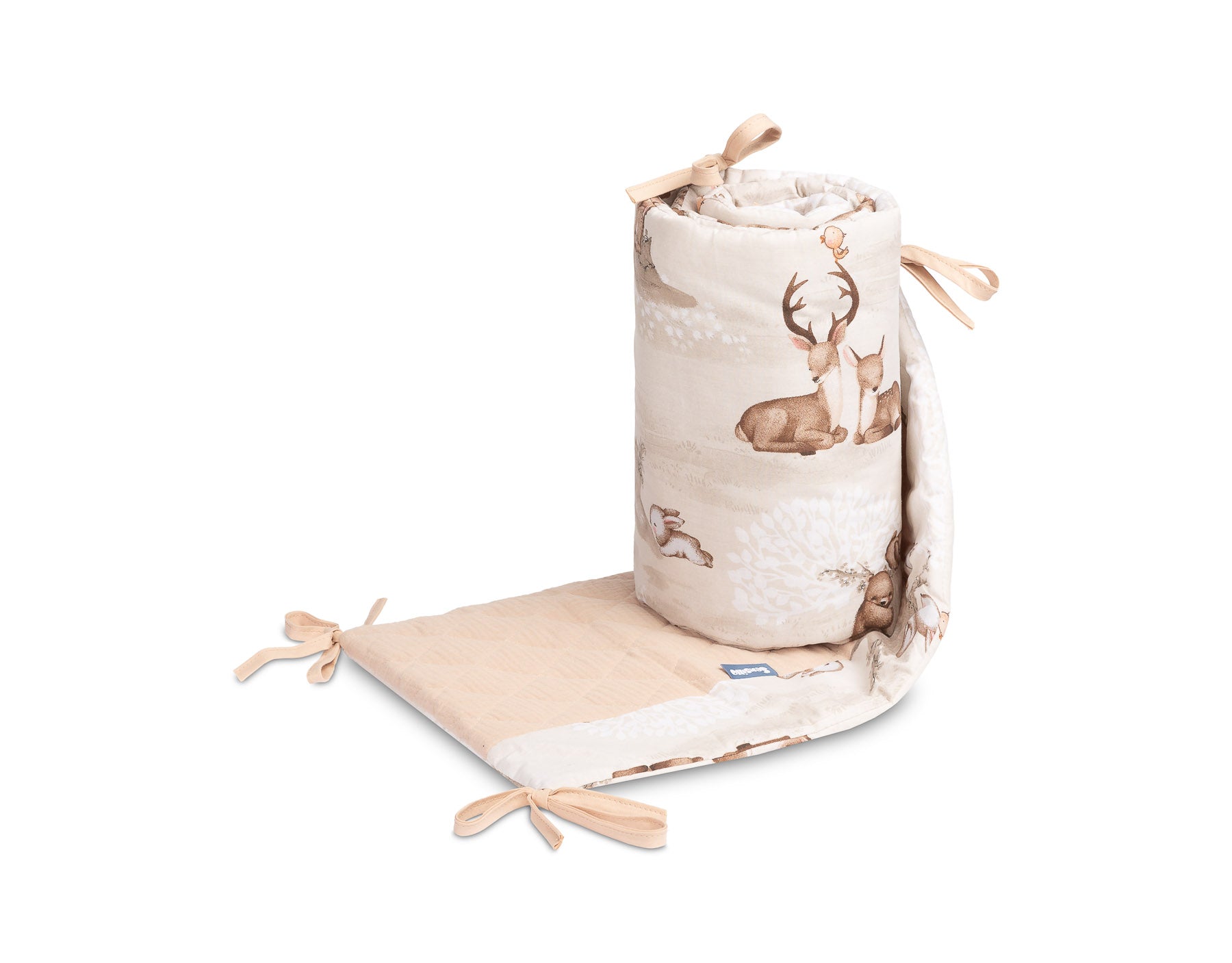 Ochranný lem na postýlku se hodí na každou standardní dětskou postýlku. Lem je vyroben z měkké tištěné bavlny a příjemného mušelínu na dotek. Výplň z polyesteru ochrání dítě před zraněním během pohybu v postýlce. Lem zůstane na svém místě díky páskům, kterými se připevní k příčkám postýlky. Je určen pro postýlku o rozměrech 120x60 cm. Lem bude skvělým doplňkem k dětskému vybavení.