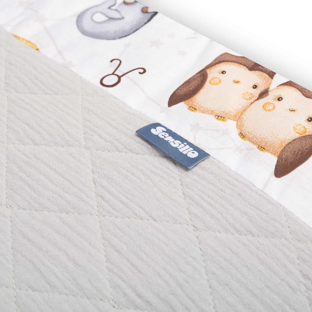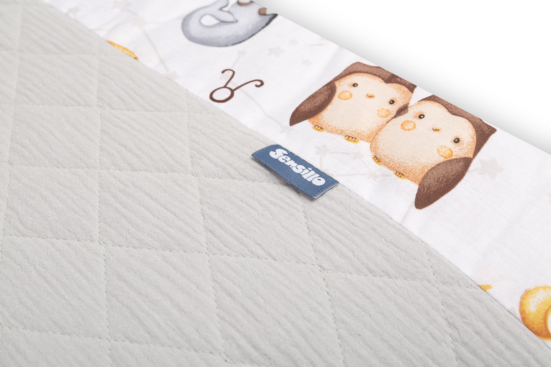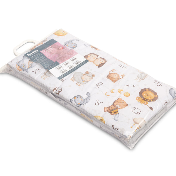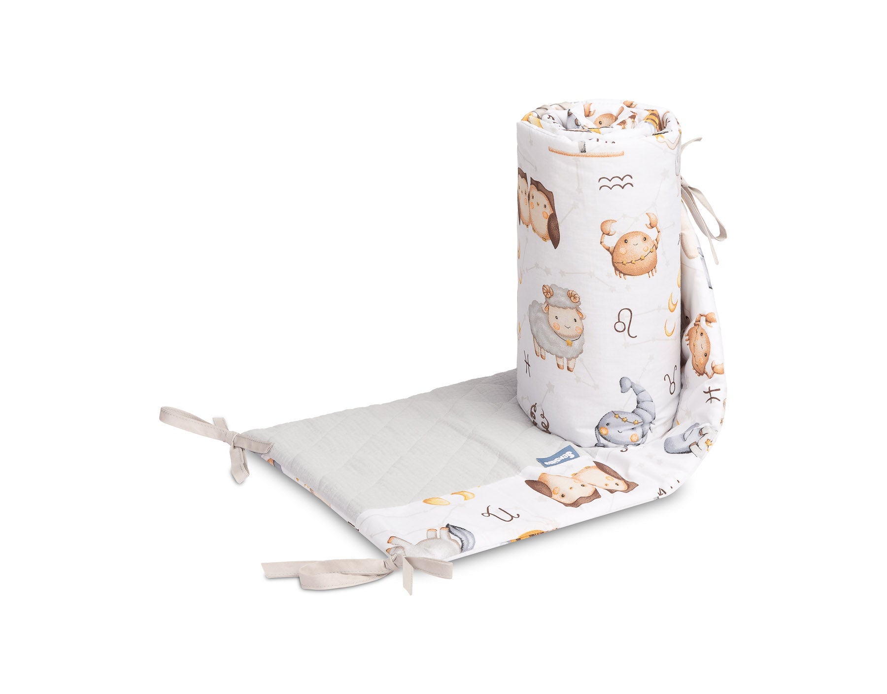 Ochranný lem na postýlku se hodí na každou standardní dětskou postýlku. Lem je vyroben z měkké tištěné bavlny a příjemného mušelínu na dotek. Výplň z polyesteru ochrání dítě před zraněním během pohybu v postýlce. Lem zůstane na svém místě díky páskům, kterými se připevní k příčkám postýlky. Je určen pro postýlku o rozměrech 120x60 cm. Lem bude skvělým doplňkem k dětskému vybavení.